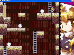 トラップその2。 一定時間だけ現れるブロックです。 最初のところは特に問題ないでしょう。 順番どおりでOK。 ここは左上のブロックと その次のブロックの出現時間が一呼吸空くので、 タイミングに注意してください。 ジャンプを連続2回するぐらいのタイミングです。 この先のメディスンは上海人形等で倒しましょう。 それと魔法のほうきのENを回復しておくこと。 まだ2回ほど使いますのでEN切れしないように。 |